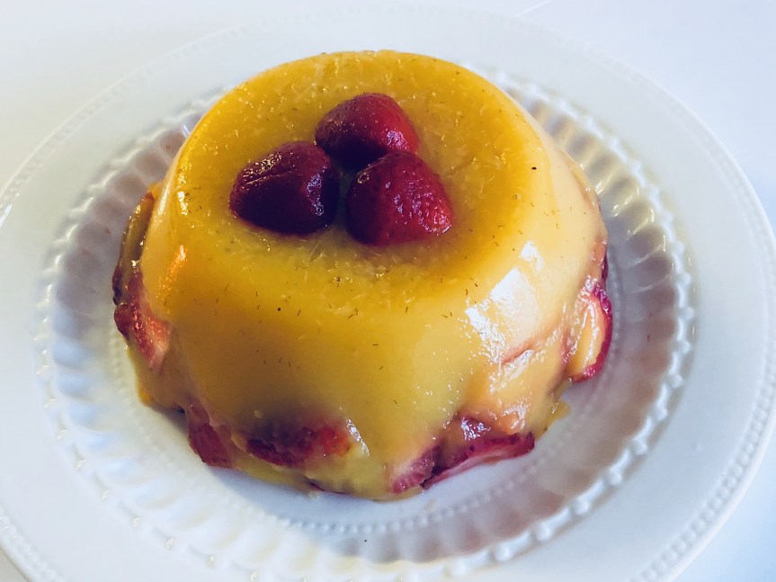 The only other note for anyone at home wanting to give this a try is that the strawberries float when you add the liquid, which means they will be on the bottom when you invert the mold. I am not sure if this was the intent or not but a heavy bottom layer of strawberries never hurt anybody. I did try to push them down a bit as the gelatin started to harden but my efforts appear to have been wasted. Regardless, it looked pretty!