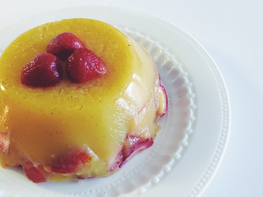 The only other note for anyone at home wanting to give this a try is that the strawberries float when you add the liquid, which means they will be on the bottom when you invert the mold. I am not sure if this was the intent or not but a heavy bottom layer of strawberries never hurt anybody. I did try to push them down a bit as the gelatin started to harden but my efforts appear to have been wasted. Regardless, it looked pretty!