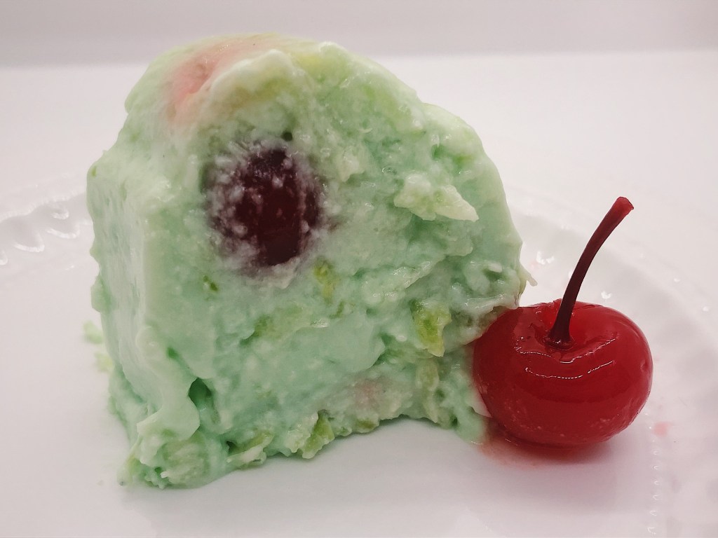 After doing a bit of research I discovered that this combination of ingredients isn’t as unusual as I thought it was. I’ve found a few versions that call for carrots, and others that omit the vegetables completely. Those ones are called Sea Foam Salad, which are actually much more like my grandma’s Emerald Salad than whatever this one is.